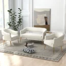 This modern living room set includes 1 loveseat and 2 accent chairs, upholstered in soft velvet fabric material, giving you a soft sense of touch, and is suitable for all kinds of living room decoration. It is made of sturdy engineered wood frames and sits on thin iron legs in a shimmering gold hue. The high-density sponge inside enhances sitting comfort and offers advanced resilience to avoid flattening and imprints. This loveseat and chair are hollowed-out back designs for your bedroom or living room to add a well-designed appearance. We love its foam cushions and curved spring-loaded seats that provide just the right amount of support when you’re reading or relaxing. To its credit, this loveseat makes you comfortable enough to sit deep!